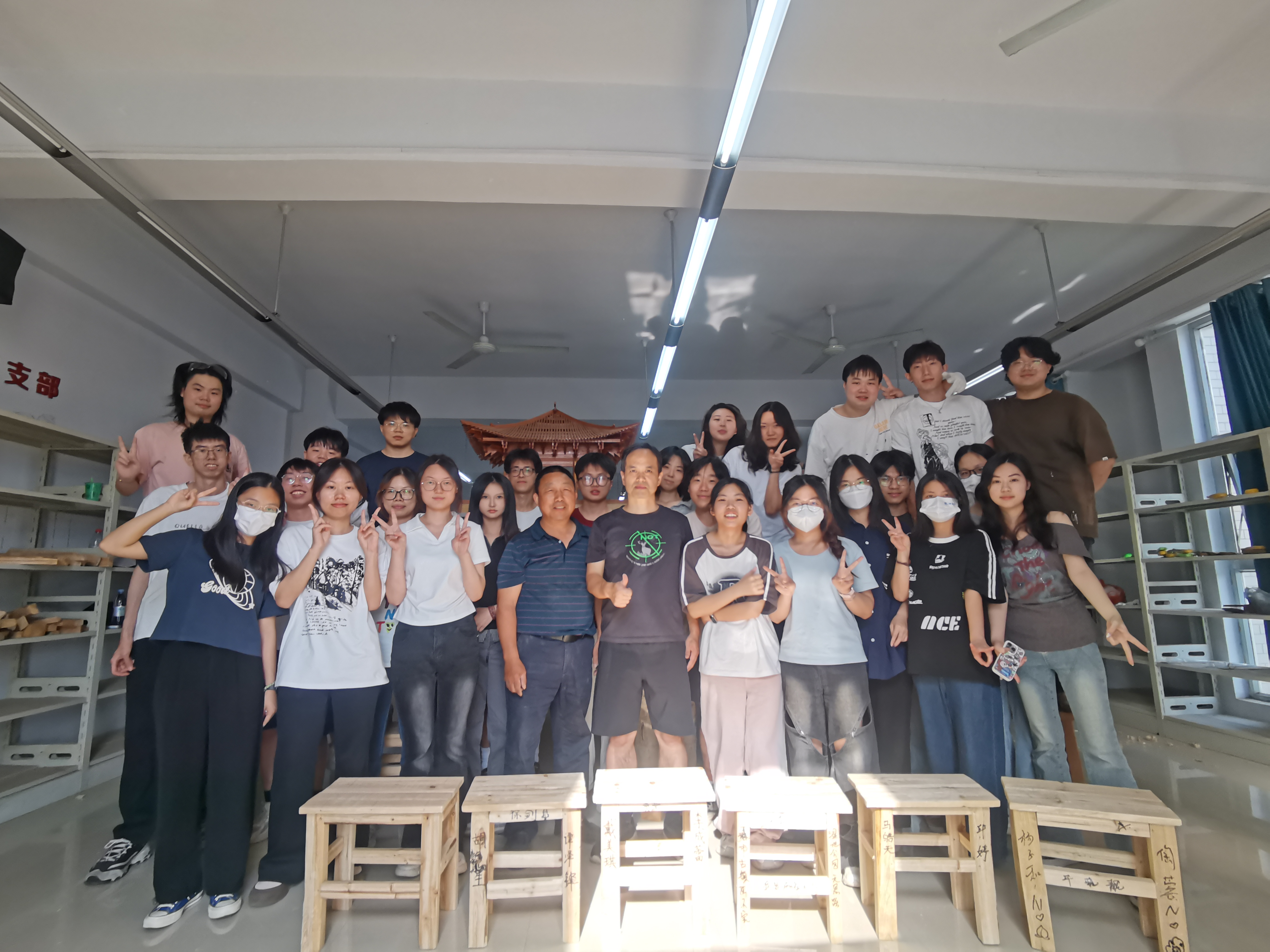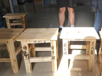 一周后,实习区摆满了“限定款”木凳!