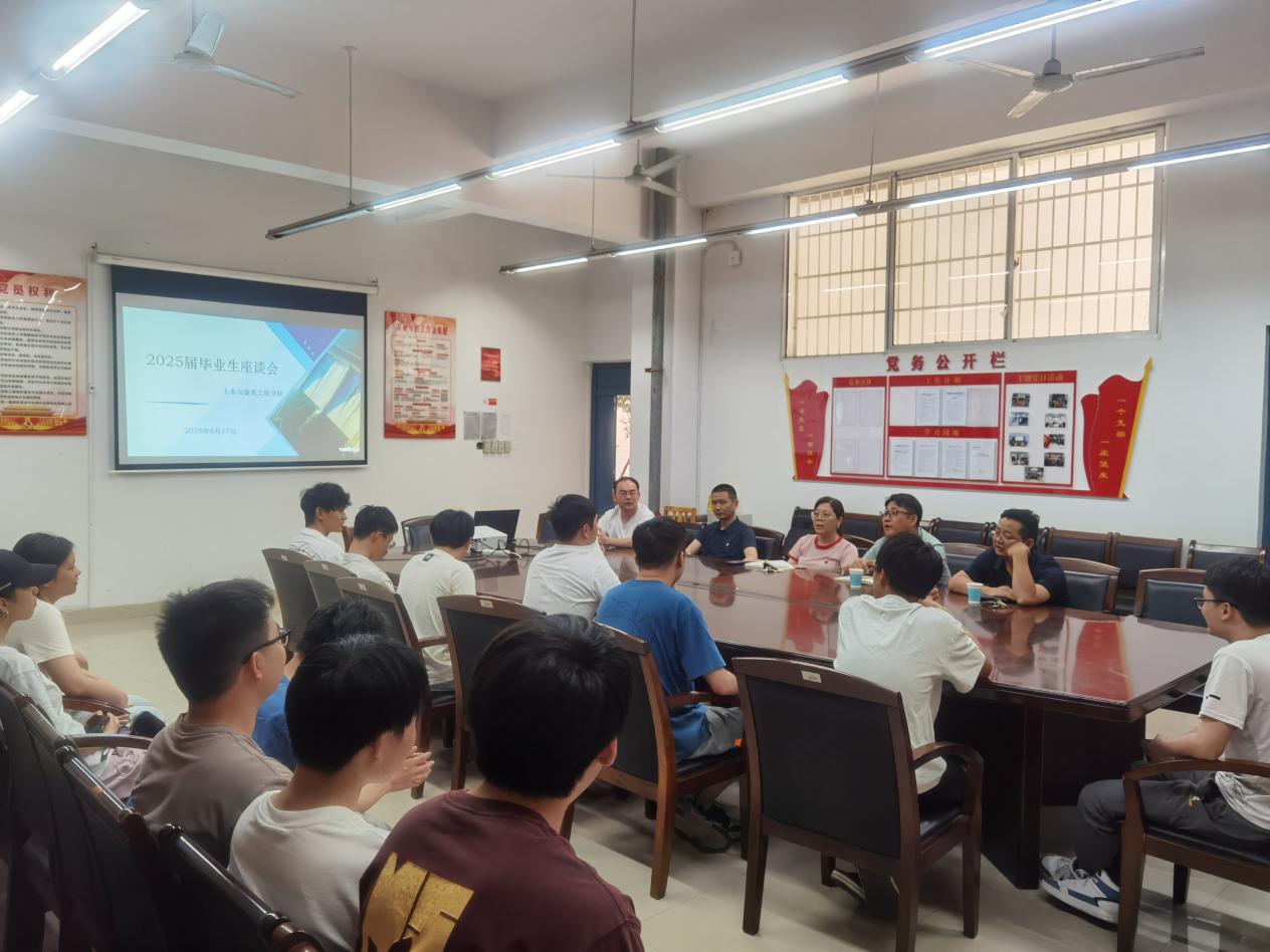 2025年6月17日下午,太阳集团tyc151在会议室召开2025届毕业生座谈会,聚焦学院首届水利水电工程专业特岗毕业生培养与职业发展。学院院长童小龙、党委书记钟铭金、副院长胡卫东,以及班主任张健、专业负责人胡传旺、教研室主任彭楚才等领导教师与毕业生代表面对面交流,倾听成长感悟,共议教育教学优化方向。
