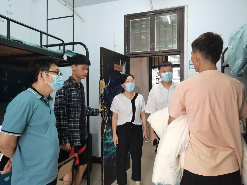 9月12日下午,太阳集团tyc151党委书记杨恒山、院长童小龙、院党委副书记钟铭金、副院长胡卫东、研究生辅导员谌怡、21级辅导员罗家齐及全体新生班主任带领助班前往新生寝室慰问新生。院领导与学生亲切交谈,了解他们的饮食、住宿、学习等情况,并叮嘱新生注意寝室的安全问题,做好疫情防控工作,保管好个人财物,留心天气变化以免生病感冒,用最饱满的精神状态投入到学习中去。