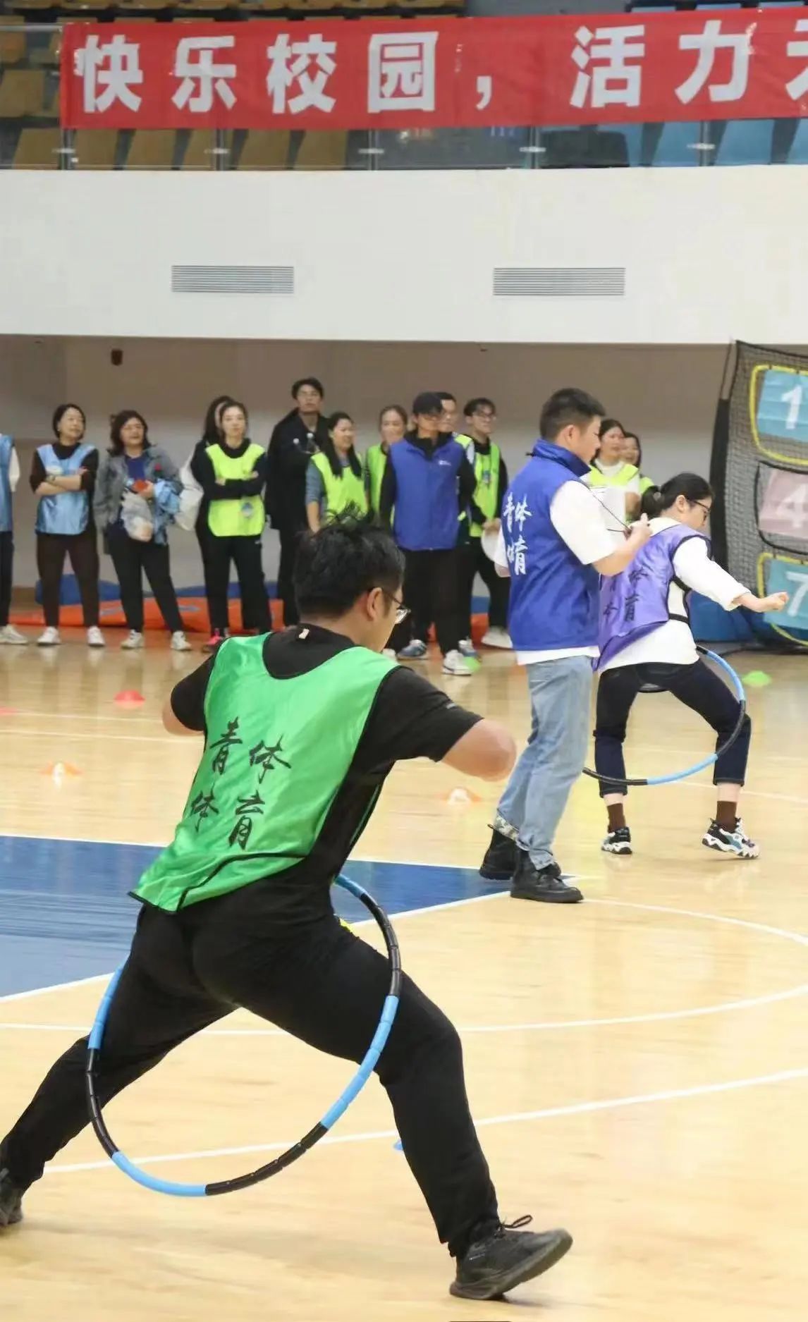 队员们迅速利用手臂的力量将呼啦圈甩起