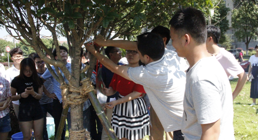 捐赠现场,王庆华等领导老师与毕业生代表一起为捐赠树木活动揭牌,为树木培土、浇水。班主任向南感谢同学们对母校发展做出的积极贡献,并勉励大家与所捐赠的树木一起成长,努力成为国家、社会的栋梁之材。毕业生代表表示:“毕业后无论走到哪里,都将像所捐赠树木的根系一样,永远紧紧地跟母校连在一起,这是象征着感恩与希望,更是对母校的认同感、归属感。”(学生记者/周伊慧 摄影/肖雄)