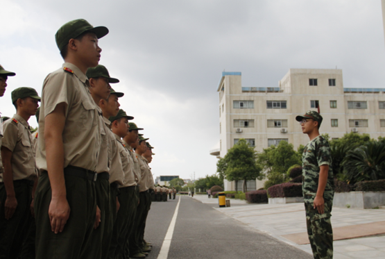 当被问及第一次当教官时的感受,周教官回答道:“第一次当助教有一种兴奋感,但同时伴随而来的是压力,主要因为没有经验,没有参加过军旅生活。在代训的过程中,我们同时也在学习,为了带好他们,为土建争第一。”在新生们的眼里,周教官很有威严,他训话时大家都不敢大喘一口气。但是,烈日下,他操着一口福建口音的嘶哑的声音一遍一遍地指导,短小精悍的身子不断地向女生们示范着分列式的正确姿势,阳光下的身影是那么伟岸。