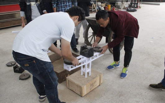 本次竞赛“纸质T形结构模型设计”为题,其主要目的是考察纸质T形结构模型在竖向荷载和水平冲击荷载作用下的承载能力,使学生通过竞赛活动能运用专业知识做出合理结构模型设计。竞赛过程中,评委针对不同模型施加荷载过程中出现的问题做了详细的讲解,并给出针对性建议。本次竞赛将评选出本部三组、南湖学院一组共四组同学进行为期一个月的加强性训练,以备战湖南省第五届大学生结构模型竞赛。