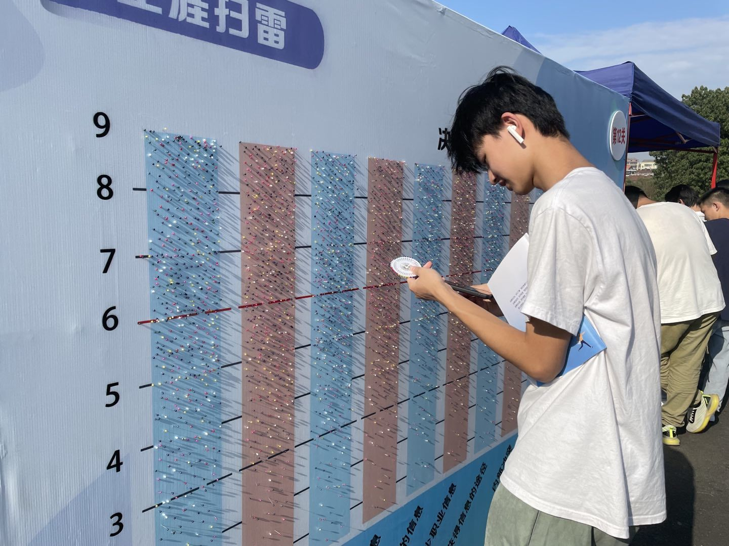 该活动以大型户外闯关的形式,将职业生涯规划元素设计成系统的活动并分设为五个区域,12个活动关卡。活动伊始,学生排队入场并在志愿者协助下完成以生涯规划为主题包括天生我材、工作三重奏、生涯走马灯等多项活动关卡。同时,学生通过部分环节进行自我目标定位、自我探索、职业探索、制定计划、生涯决策、创业意识启蒙并且在实践体验中了解、开展自身生涯规划。在活动末尾,参与学生均能获得一份精美礼品。