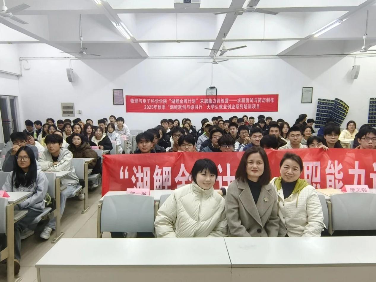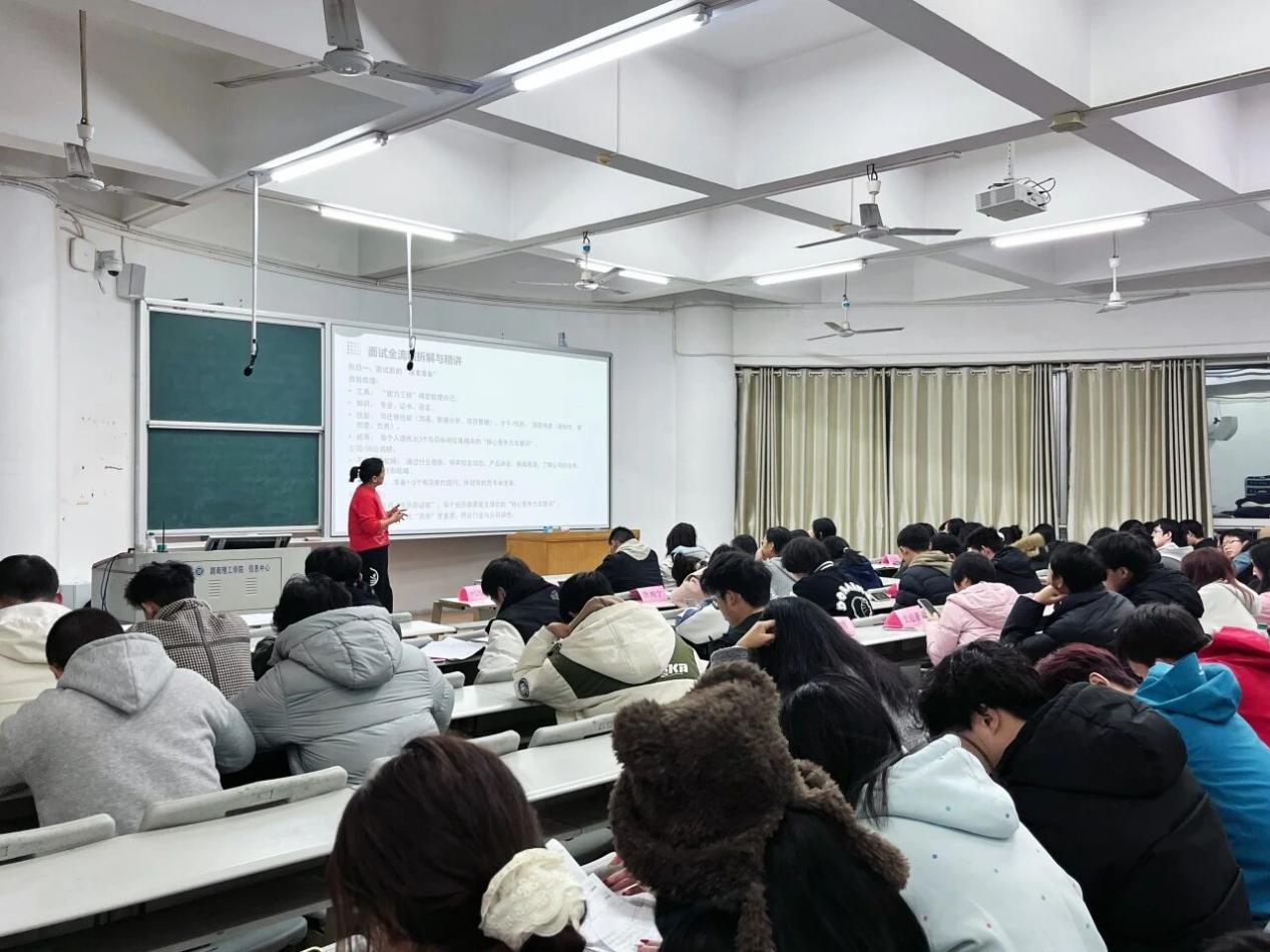 为切实提升学子求职竞争力、助力青年学子科学规划职业道路,湖南理工学院太阳集团tyc151联合物电学院,在首次课程基础上持续发力,精心打造“湖鲤金牌计划”求职面试与简历制作系列课程。该系列课程分四次开展,均于6T2教室进行授课,吸引太阳集团tyc15123级专升本学生、25级新生及物电学院学子踊跃参与。