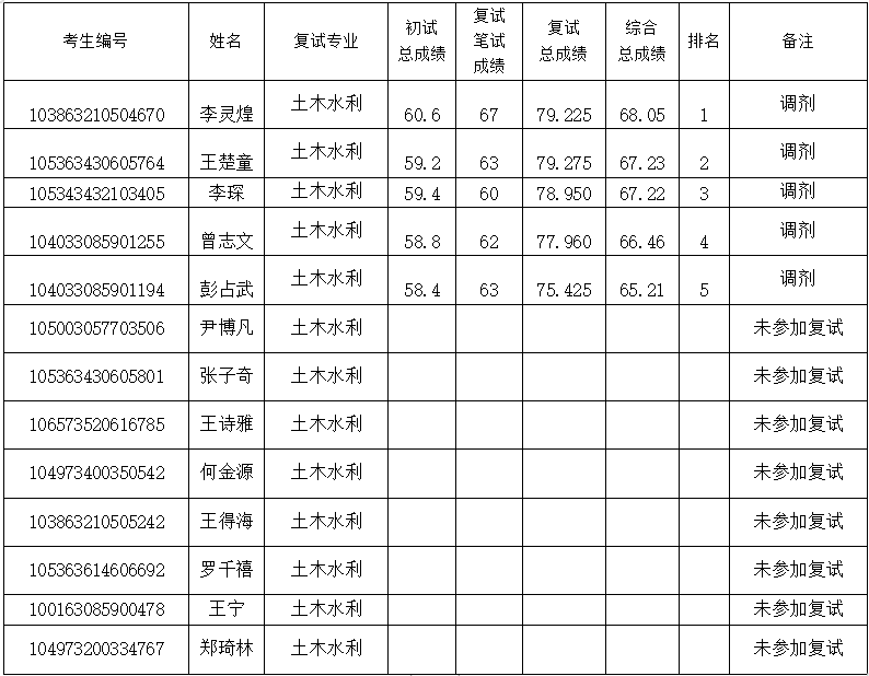 (6)如有拟录取考生放弃录取资格,空出的招生计划我院将通过在同一复试批次内按综合总成绩排名顺延递补拟录取的方式完成。